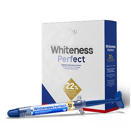 Blanqueamiento Dental Casero Whiteness Perfect al 22% marca FGM con 2 guardas termoformables CAVEX Boil & Bite (Copia)