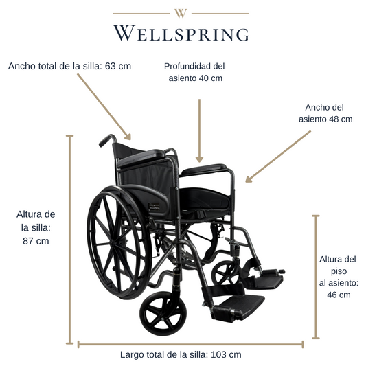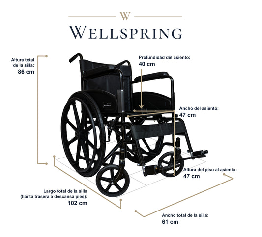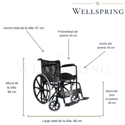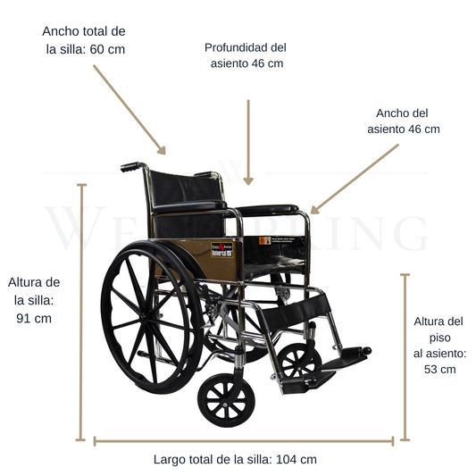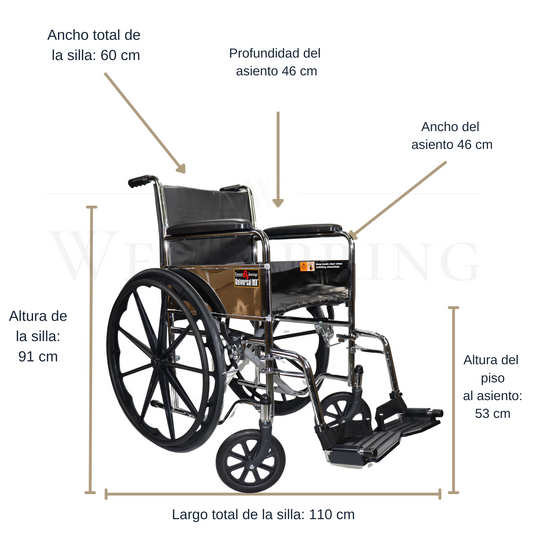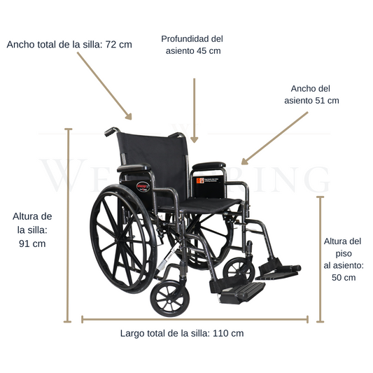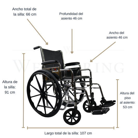 Silla de ruedas llanta solida premium, estribo fijo, vestiduras de lona