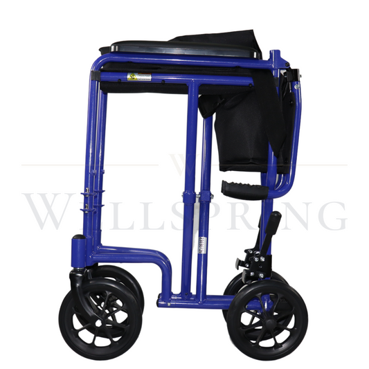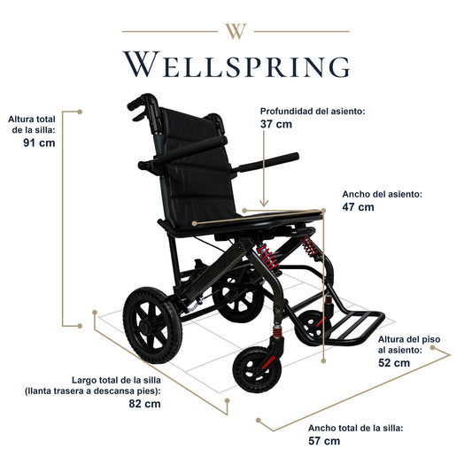 Silla de ruedas de traslado de lujo para viaje, plegado tipo maleta, acabado fibra de carbono con amortiguadores