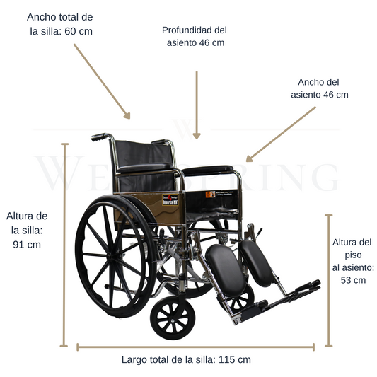 Silla De Ruedas Cromada Con Eleva Piernas Everest & Jennings UNIVERSAL MX, Descansa Brazos Fijo